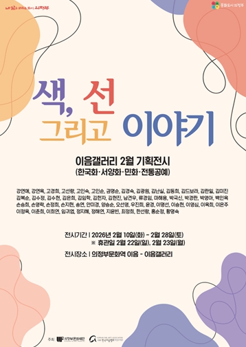 이번 전시는 의정부에서 활동하는 지역작가들이 한국화, 서양화, 민화, 전통공예 등 다양한 장르를 통해 색과 선이라는 조형적 요소를 중심으로 각자의 이야기를 풀어내는 전시로, 전통과 현대가 공존하는 시각예술의 확장 가능성을 제시하고자 기획됐다. 서로 다른 장르와 표현 방식 속에서도 색과 선을 통해 인간의 삶과 감정을 담아낸다는 공통된 조형 언어에 주목한다.