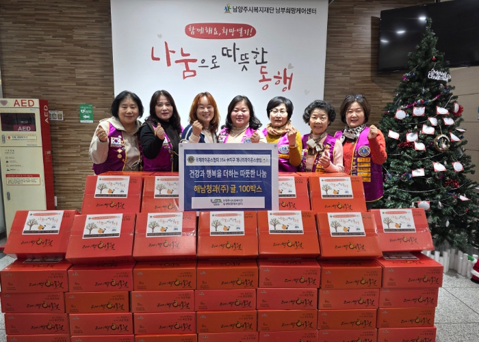 [뉴스스텝] 남양주시는 12월 2일 국제라이온스협회 354-H지구 개나리라이온스클럽이 지역 내 복지취약가정을 위해 5kg 귤 100박스(160만 원 상당)를 남양주시 남부희망케어센터에 후원했다고 밝혔다.