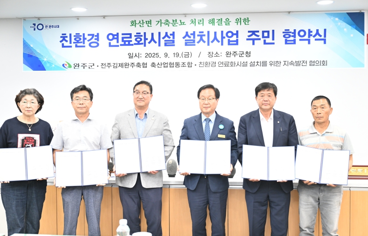 이날 협약식에는 김 위원장을 비롯해 유희태 완주군수, 김창수 전주김제완주축협 조합장, 화산면 수실·돈의·부현 마을 이장 등 주민 대표가 함께해 상호 이해와 협력을 다졌다.