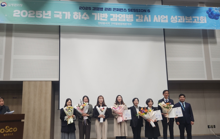 [뉴스스텝] 대전보건환경연구원은 28일 청주 오스코에서 열린 ‘2025년도 감염병관리 콘퍼런스’에서 하수기반 감염병 감시 우수기관으로 선정되어 질병관리청장 기관 표창을 받았다.