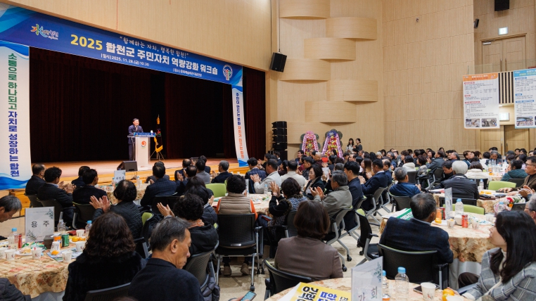 [뉴스스텝] 합천군은 28일 합천문화예술회관에서 관내 주민자치위원과 읍면 담당 공무원 등 230여 명이 참석한 가운데 주민 중심의 자치 실현을 위한 소통과 역량 강화를 위해‘2025년 합천군 주민자치 워크숍’을 개최했다.