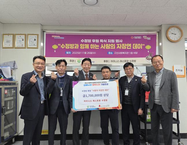 [뉴스스텝] (재)김해시복지재단 구산사회복지관은 지난 26일, 김해 수정방에서 지역 내 취약계층 170명을 대상으로 “사랑의 자장면 데이” 특식 나눔 행사를 진행했다고 밝혔다.
