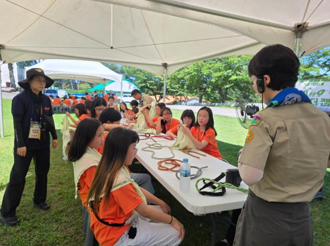 남원 지리산유스캠프에서는 ‘지리산에서 살아남기’ 프로그램을 통해 톱과 망치 사용법, 산불 대피, 구조 요청법, 방향 찾기, 불 피우기, 쉘터 구축, 응급처치법 등 생존 기술을 자연스럽게 익히며 안전에 대한 자신감을 키웠다.