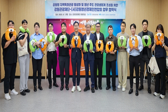 [뉴스스텝] 강원관광재단(대표이사 최성현)과 (사)강원청년경제인연합회(회장 강원선)가 강원특별자치도의 관광 혁신을 위해 힘을 모은다. 양 기관은 지난 2025년 8월 7일 강원관광재단에서 업무협약을 맺고, 청년의 새로운 시각을 동력으로 삼아 지역특화 관광 활성화와 지속 가능한 관광 생태계를 조성하는 데 적극 협력하기로 했다.