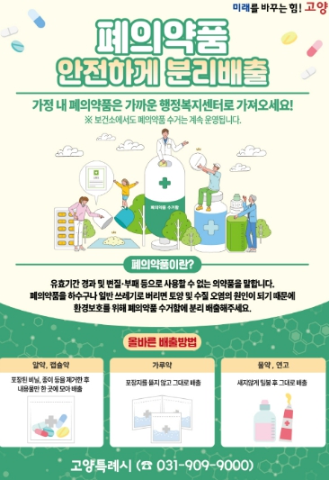 [뉴스스텝] 고양특례시는 가정에 방치된 폐의약품의 안전한 회수를 위해 관내 44개 동 행정복지센터에 폐의약품 수거함을 신규 설치했다고 7일 밝혔다.