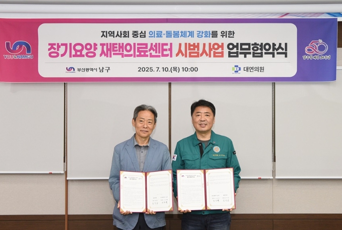 [뉴스스텝] 부산광역시 남구청은 지난 10일 보건복지부 주관 ‘2025년 장기 요양 재택의료 센터 시범 사업’에 선정되어, 관내 대연의원과 협약을 체결하고 재택 의료서비스 제공에 나섰다.