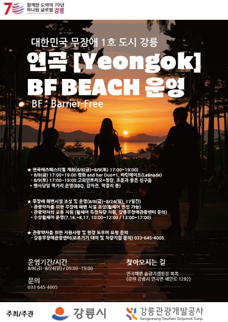 이번 행사는 강릉시와 강릉관광개발공사가 주최·주관하며, 이동권이 제한된 관광객도 불편 없이 바다를 즐길 수 있도록 다양한 무장애 기반시설과 문화 프로그램이 마련된다.