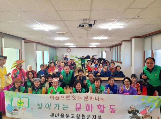 이 사업은 새마을문고에서 문화 소외 지역 및 계층을 대상으로 일상적 공간으로 직접 찾아가는 문화 활동을 지원함으로써 합천군민의 문화 소통의 기회를 제공함을 목적으로 이날, 전통무용, 정가, 민요, 색소폰 연주, 가요공연 순의 다양한 공연 봉사 실시로 흥겨운 시간을 마련해드렸으며, 준비한 다과를 대접했다.