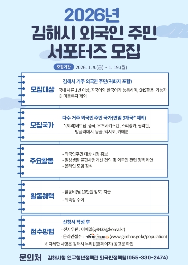 ▲ 김해시, 2026년 제2기 외국인주민 서포터즈 모집