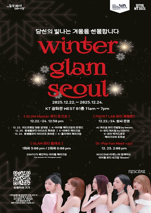 [뉴스스텝] 서울시가 서울윈터페스타를 찾은 국내외 관광객에게 차별화된 한류 경험을 제공하기 위해 K-뷰티를 주제로 한 ‘윈터 글램 서울(Winter Glam Seoul)’ 팝업 행사를 12월 22일부터 24일까지 3일간 개최한다.