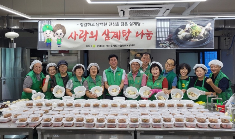 [뉴스스텝] 광명시 광명4동 새마을지도자협의회(회장 윤용구)와 새마을부녀회(회장 최영희)는 지난 16일부터 17일까지 이틀간 지역 취약계층을 위한 삼계탕 나눔 행사를 진행했다.