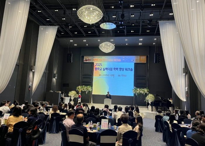 [뉴스스텝] 청주교육지원청은 8월 26일, 8월 27일 2일 동안 청주 S컨벤션에서 2025. 중학교 실력다짐 학력 향상 워크숍을 연다. 이번 워크숍에는 관내 중학교 교감, 교육과정‧평가‧학력 담당 교사 230여 명이 참석한다.