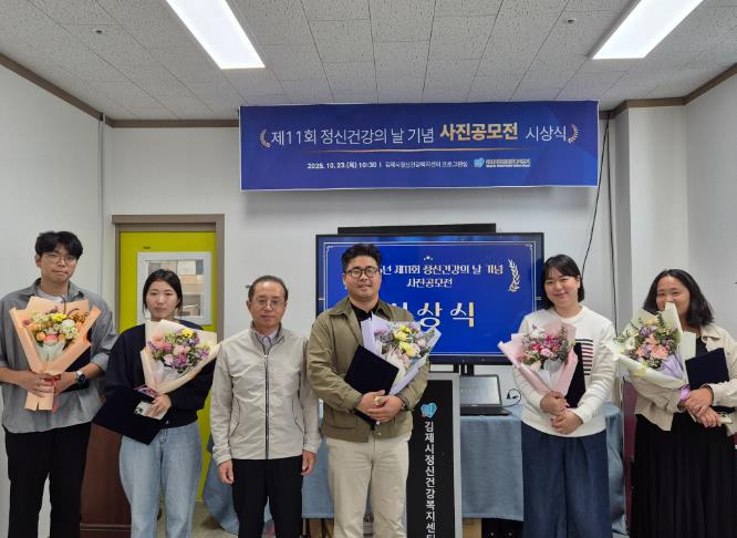 [뉴스스텝] 김제시는 10월 10일 정신건강의 날을 맞아 정신건강의 중요성에 대한 홍보 및 관심을 고취시키고 정신건강에 대한 인식개선을 도모하고자 제11회 정신건강 사진공모전“마음행복사진관:행복의 계절”을 개최하고 23일 시상식을 개최했다고 밝혔다.