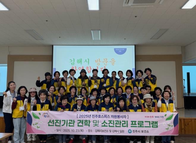 [뉴스스텝] 진주시 보건소는 호스피스 자원봉사자들의 돌봄 서비스 역량 강화와 사기진작을 위해 23일 김해시보건소 견학 및 소진관리 프로그램을 실시했다고 밝혔다.
