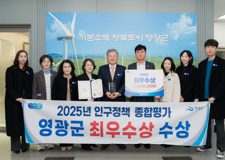 [뉴스스텝] 영광군은 2025년 전라남도가 주관한 「전라남도 인구정책 우수 시‧군 평가」에서 ‘최우수상’을 수상했다고 밝혔다.