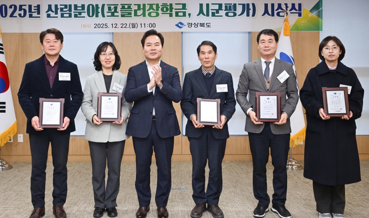 [뉴스스텝] 경상북도는 22일 도청 사림실에서 ‘2025년 산림분야 종합평가’우수 시군에 표창패와 포상금을 수여하고 한 해 동안 산림시책 행정 추진을 위해 노력한 시군 관계자들을 격려했다.