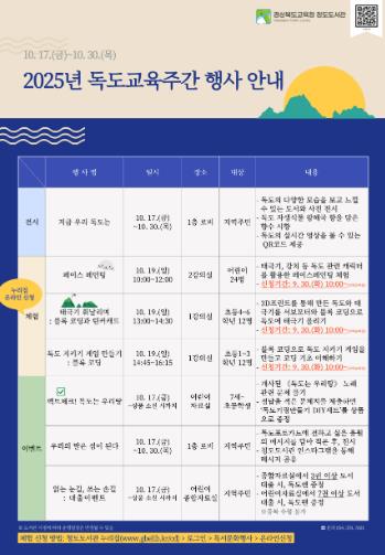 [뉴스스텝] 경상북도교육청 청도도서관은 오는 10월 17일부터 30일까지 지역 주민을 대상으로 '2025년 독도교육주간 행사'를 운영한다.