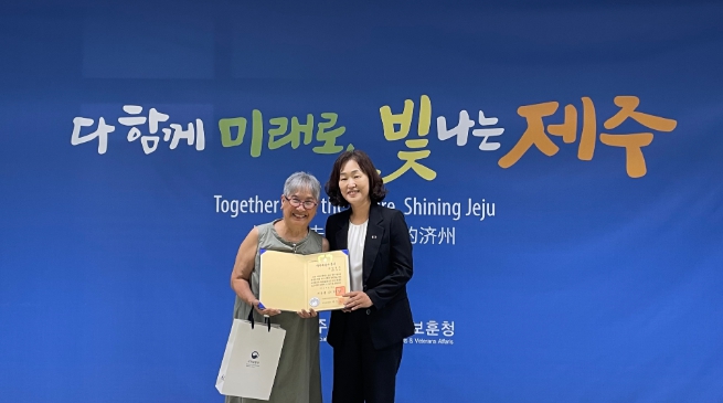 [뉴스스텝] 제주특별자치도 보훈청은 2013년 건국훈장 애국장을 추서받은 애국지사 고(故) 임정구 선생의 외손녀 선우 브렌다 백 씨에게 국가유공자 유족 증서를 수여했다.