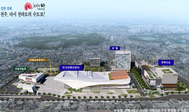 투자선도지구로 선정된 '전주MICE사업'은 2028년까지 총 10,547억 원을 투입해 전주종합경기장 부지 12만㎡에 전시컨벤션센터와 백화점, 호텔, 미술관 건립 등 글로벌 국제도시로의 도약 기반을 마련한다.