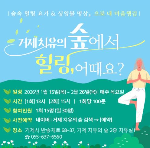 [뉴스스텝] 거제 치유의 숲이 2026년 새해를 맞아 ‘숲속 힐링 요가 & 싱잉볼 명상으로 내 마음챙김’을 운영한다.
