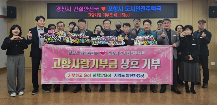 [뉴스스텝] 경산시는 9일 경산시 건설안전국 직원과 포항시 도시안전주택국 직원들이 총 700만 원의 고향사랑기부금을 상호 기부하며 연말 고향사랑기부 분위기 확산에 나섰다고 밝혔다.
