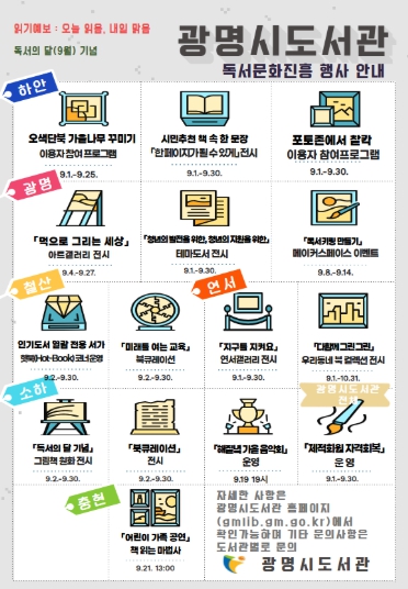 ▲ 광명시 독서의 달(9월) 기념 광명시도서관 독서문화진흥 행사 안내문. |