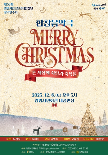 [뉴스스텝] 광명시는 오는 6일 오후 5시 광명시민회관 대공연장에서 광명시립소년소녀합창단 제53회 정기공연 ‘메리 크리스마스(Merry Christmas)’를 개최한다.