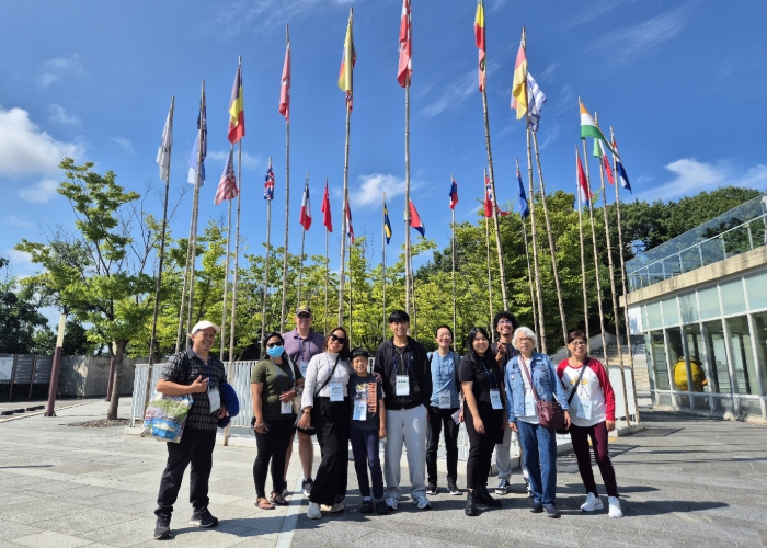 ▲ 환승투어에 참여중인 외국인이 애기봉 평화생태공원에서 기념사진을 찍고 있다. |