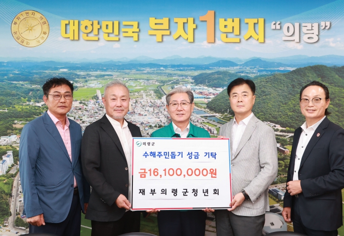 [뉴스스텝] 의령군은 재부의령군청년회에서 최근 집중호우로 피해를 입은 의령군민들을 돕기 위해 성금 1,610만원을 기탁했다고 밝혔다.