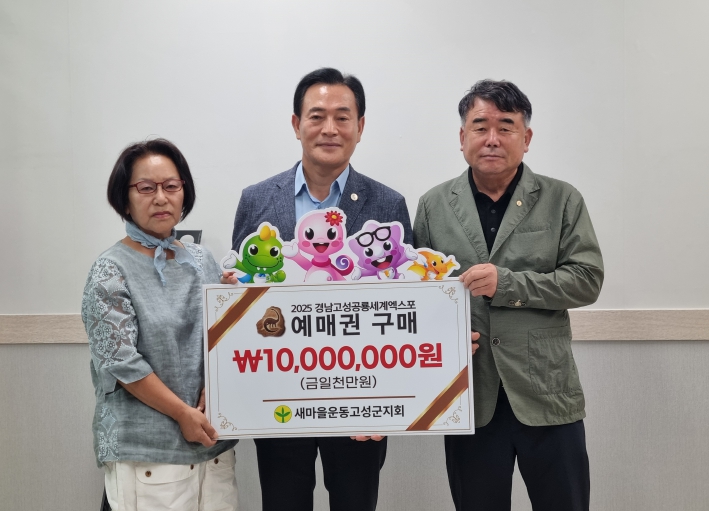 [뉴스스텝] 고성문화관광재단(이사장 이상근)은 새마을운동 고성군지회(회장 조광복)가'2025 경남고성공룡세계엑스포'의 성공적인 개최를 위해 8월 28일 예매권 1천만 원어치를 구매했다고 밝혔다.