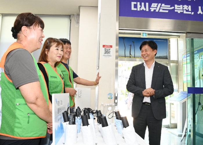 아울러 조용익 부천시장은 12일 원종사거리를 찾아 실외 무인 냉장고 ‘오아시수(水)’ 운영 현장을 점검했다. 이후 원종1동 행정복지센터를 방문해 양우산 비치 현황과 대여·반납 절차를 살피며, 폭염 속 시민 불편이 없도록 원활한 운영을 당부했다. 또한, 무더위에 외출한 시민에게 직접 양우산을 건네고, 폭염 시 건강관리 요령을 안내하는 등 시민들과 현장에서 소통하는 시간을 가졌다.