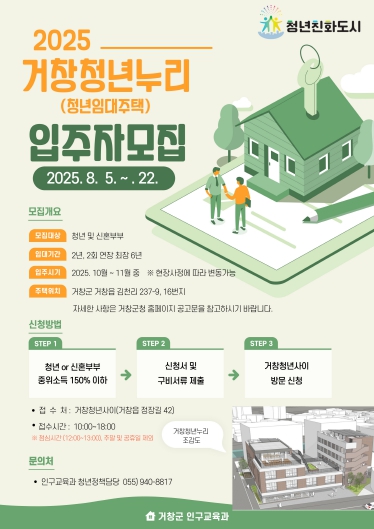 [뉴스스텝] 거창군은 올해 10월 준공 예정인 거창청년임대주택의 공식 명칭을 ‘거창청년누리’로 확정하고 8월 5일부터 22일까지 첫 입주자를 모집한다.