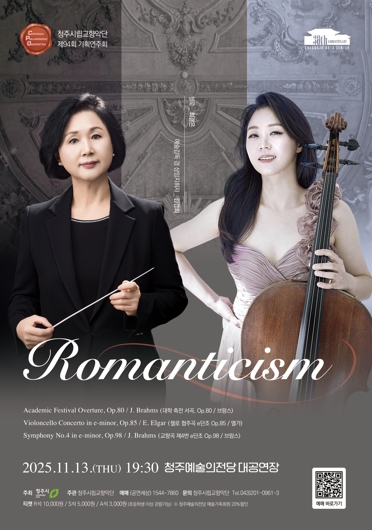 [뉴스스텝] 청주시립교향악단은 오는 11월 13일 오후 7시 30분 청주예술의전당 대공연장에서 제94회 기획연주회 ‘로맨티시즘(Romanticism)’을 선보인다.