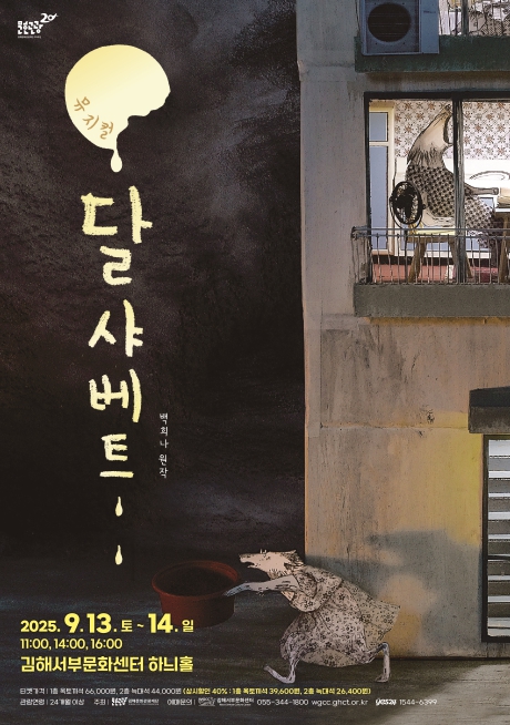 예매는 김해서부문화센터 누리집과 예스24 티켓을 통해 가능하며, 자세한 사항은 전화 을 통해 확인할 수 있다.