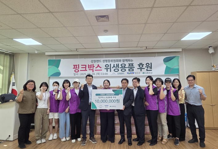 김덕기 가족행복과장은 “여성청소년들이 위생용품 걱정 없이 건강하게 성장할 수 있도록 지원해 주신 강원랜드 성평등위원회와 초록우산 어린이재단 강원지역본부에 감사드리며, 앞으로도 지역 아동과 청소년의 건강과 복지 향상을 위해 노력하겠다”고 말했다.
