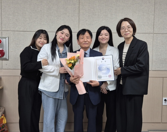 | ▲ ‘2025년 치매극복 희망수기 공모전’ 치매안심센터 이용자 부문의 유광하 어르신 장려상 수상 기념촬영. |