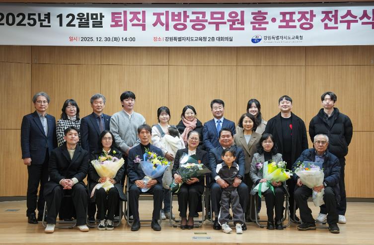 | ▲ 강원특별자치도교육청 2025년 12월말 퇴직 지방공무원 훈·포장 전수식 |