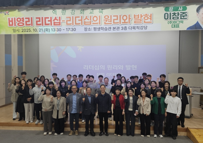 [뉴스스텝] 남원시는 10월 21일 오후 1시 30분부터 평생학습관 3층 다목적 강당에서 민간사회복지 종사자 70여명이 참석한 가운데 '비영리 리더십 – 리더십의 원리와 발현'을 주제로 2025년 민간사회복지사 역량강화교육 5회차 마지막 교육을 성황리에 마쳤다.