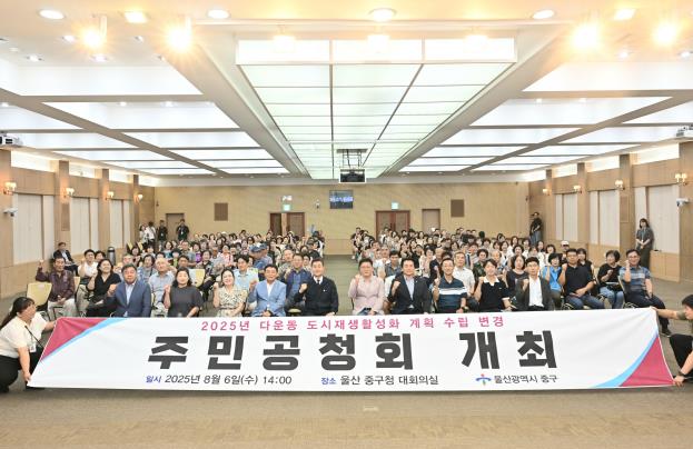 [뉴스스텝] 울산 중구가 8월 6일 오후 2시 중구청 대회의실에서 ‘다운동 정다운 정원마을 도시재생사업 활성화 계획’ 변경 수립을 위한 주민공청회를 개최했다.