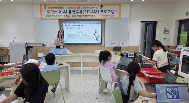 [뉴스스텝] 인천광역시교육청AI융합교육원은 8월 6일부터 14일까지 관내 초등학교 3~6학년 학생 105명을 대상으로 ‘생각을 여는 읽걷쓰×AI 융합교육(STEAM) 캠프’를 운영한다.