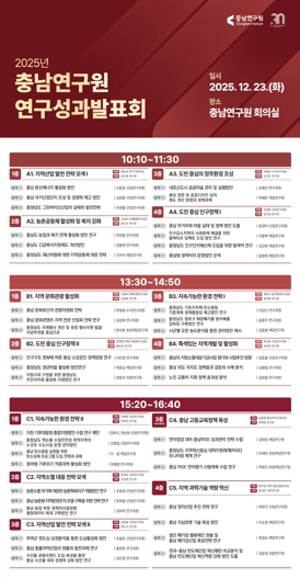 연구원 관계자는 “발표회는 2025년 충남연구원의 연구결과물을 체계적으로 정리·환류해 정책활용도를 높이고, 도민 삶의 질 향상에 실질적으로 기여할 수 있는 실행 가능한 정책과제를 확산하는 것을 목표로 한다”고 말했다.