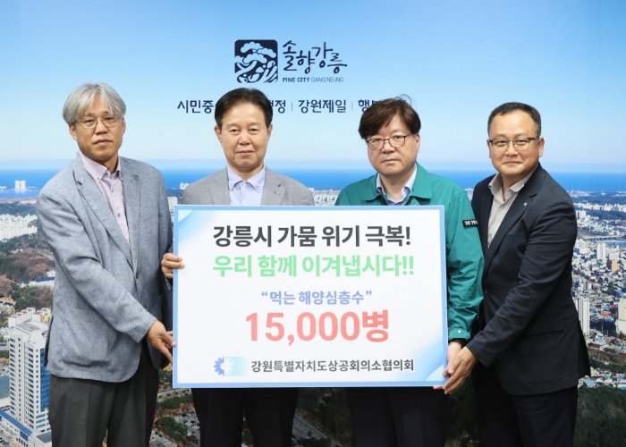 강원특별자치도상공회의소협의회도 26일 강릉시에 500㎖ 15,000병(550만 원 상당)을 기탁하며 도움의 손길을 보탰다.