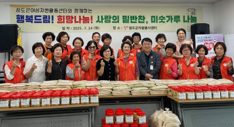[뉴스스텝] 청도군여성자원활동센터(회장 이명순)는 지난 24일 회원 25명이 참여한 가운데 청도군자원봉사센터에서 관내 취약계층을 위한 ‘사랑의 미숫가루, 밑반찬 나눔’ 행사를 가졌다.