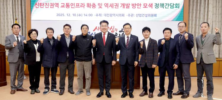 [뉴스스텝] 대전시의회 산업건설위원회는 10일 시의회 소통실에서 송활섭 의원(무소속, 대덕구2)을 좌장으로 「신탄진권역 교통인프라 확충 및 역세권 개발 방안 모색 정책간담회」를 개최했다.
