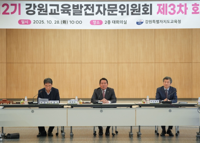 [뉴스스텝] 강원특별자치도교육청은 28일 도교육청 대회의실에서 ‘제12기 강원교육발전자문위원회 제3차 회의’를 열고 2026년 도교육청 주요업무계획을 함께 논의했다.