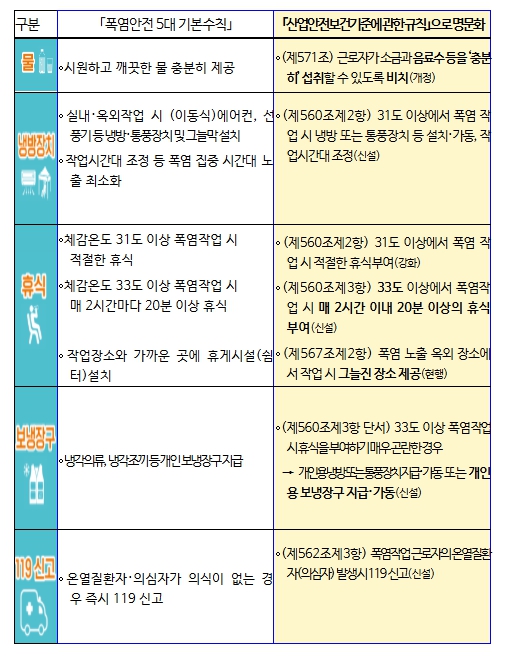 ▲ 「폭염안전 5대 기본수칙」 명문화 |