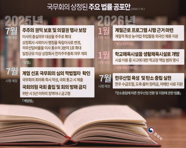 ▲ 국무회의 상정된 주요 법률 공포안.(제공=법제처) |