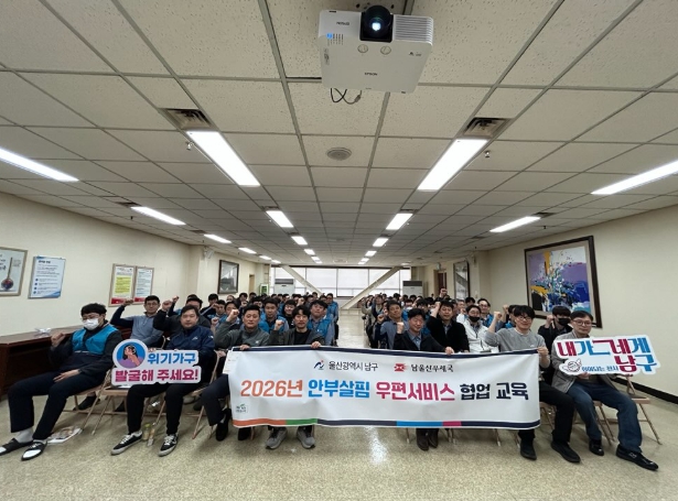 [뉴스스텝] 울산 남구는 29일 남울산우체국 집배원 100명을 대상으로 ‘안부살핌 우편서비스 사업 교육 및 명예사회복지공무원 역할 가이드 교육’을 실시했다.