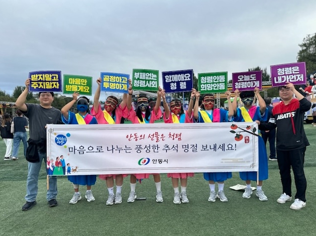 이번 캠페인은 10월 4일 안동탈춤축제장에서 ‘안동의 선물은 청렴, 마음으로 나누는 풍성한 추석 명절 보내세요’라는 슬로건 아래 진행됐으며, 시민과 공직자가 함께 청렴 실천을 다짐하는 퍼포먼스를 통해 청렴문화 확산에 앞장섰다.