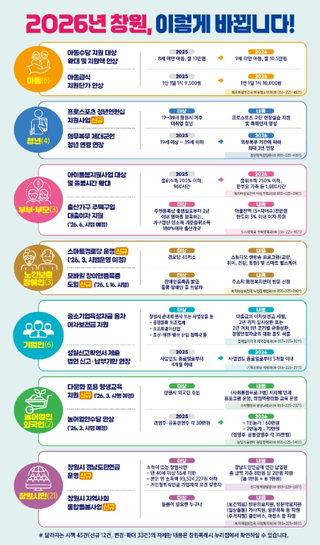 한편, '2026년 달라지는 시책' 책자는 각 읍·면·동 행정복지센터 민원대에 비치될 예정이며, 전자책(e-book) 형태로도 발간돼 창원시 홈페이지(시정소식→주요시정→2026년 달라지는 시책)에서 세부내용을 확인할 수 있다.